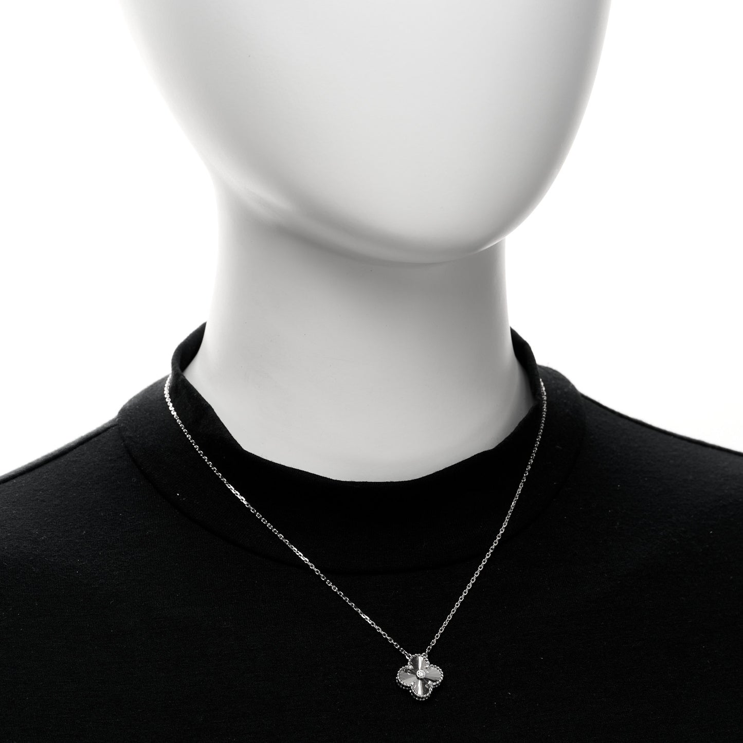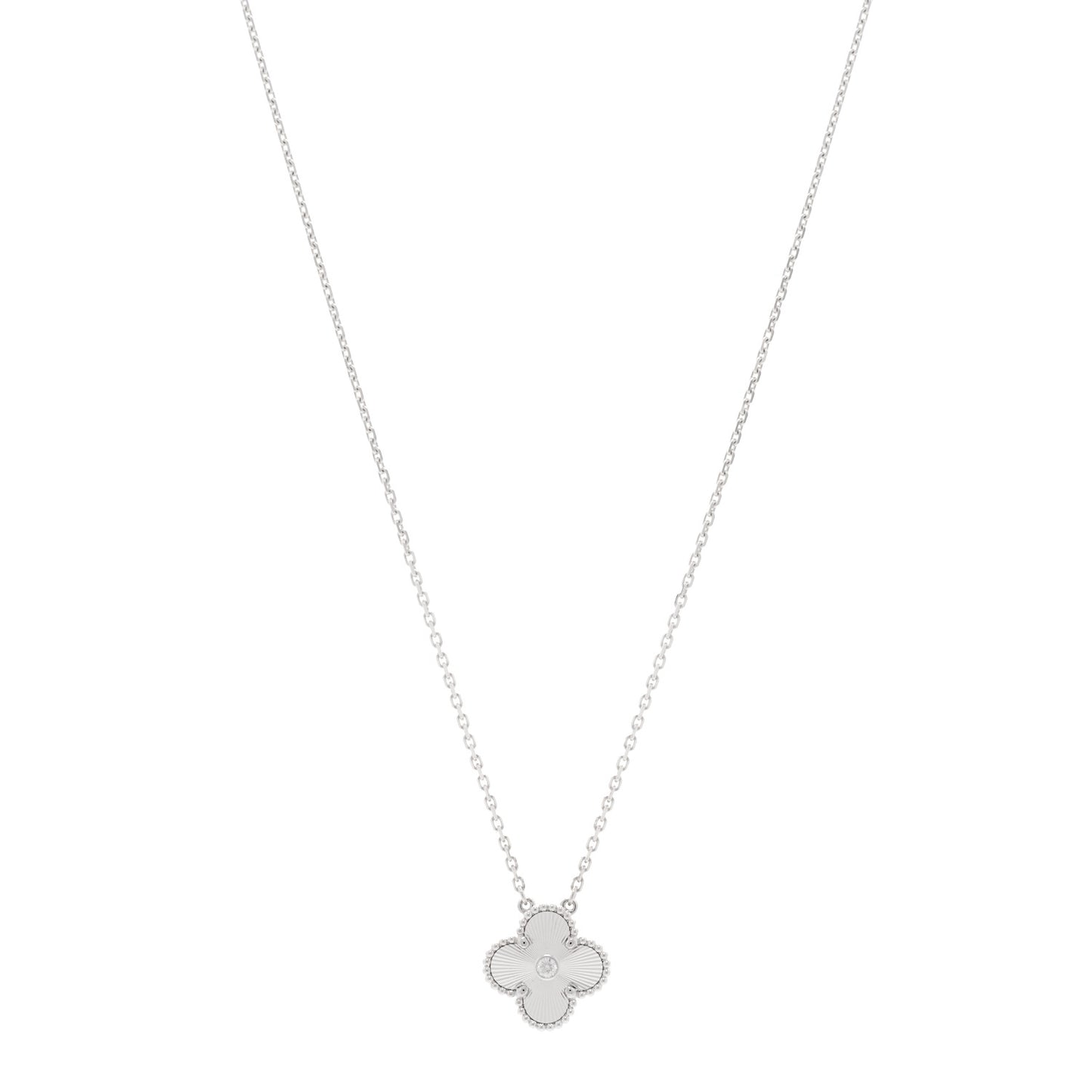 18K White Gold Diamond Guilloche Vintage Alhambra Pendant Necklace