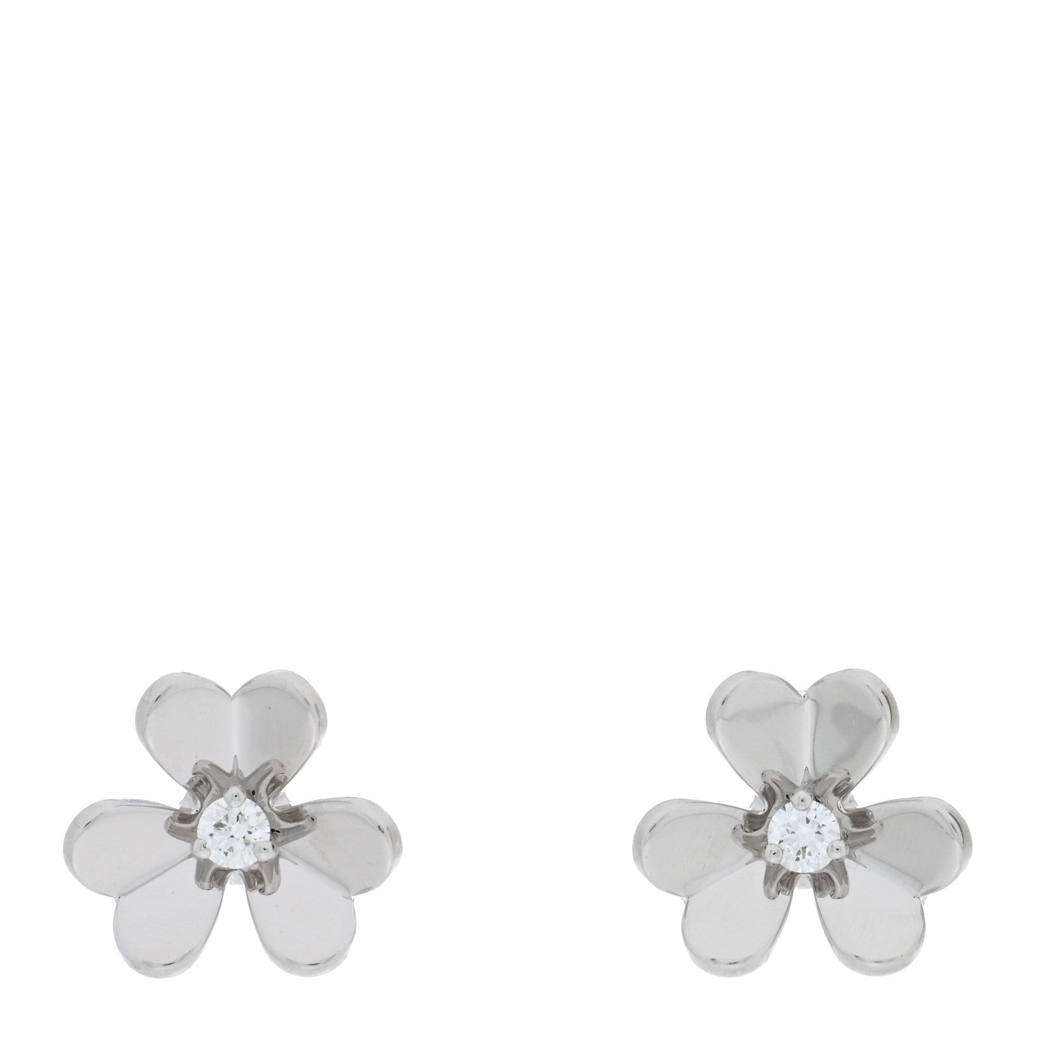 This is an authentic pair of VAN CLEEF & ARPELS 18K White Gold Diamond Mini Frivole Earrings. The earrings are crafted of 18 karat white gold and feature a three leaf clover motif set with a single diamond, approximately .10 total carat weight.Follow this item for alerts. Van Cleef & Arpels is a registered trademark of Van Cleef & Arpels. FASHIONPHILE is not affiliated with Van Cleef & Arpels.