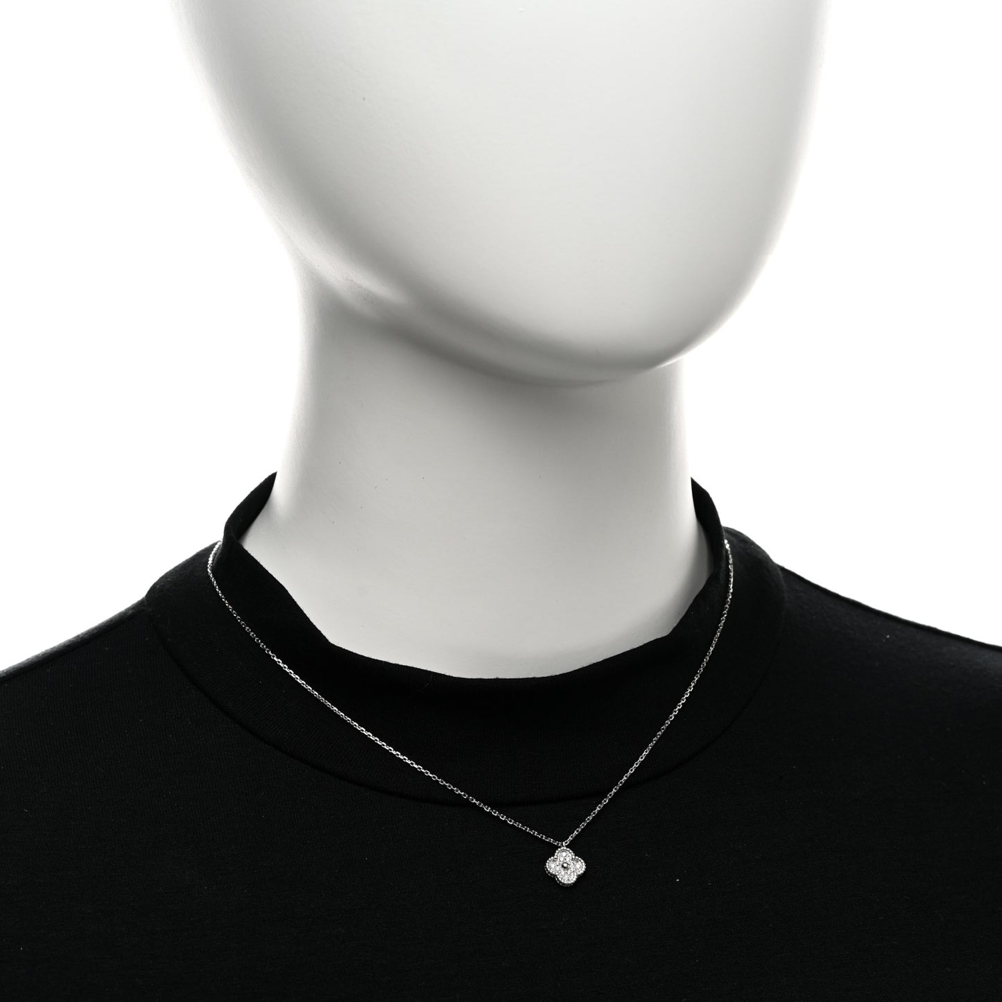 18K White Gold Diamond Sweet Alhambra Pendant Necklace
