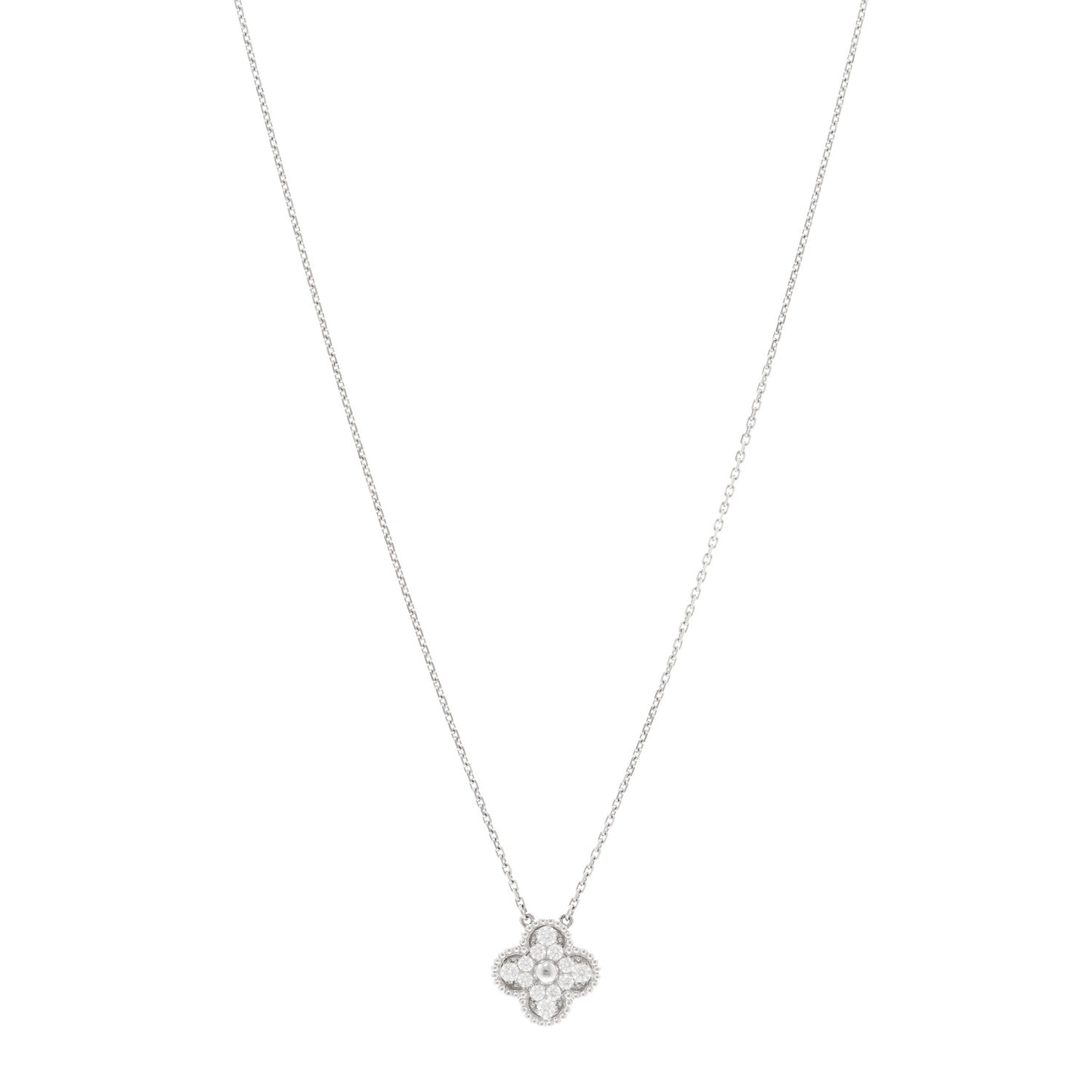18K White Gold Diamond Vintage Alhambra Pendant Necklace