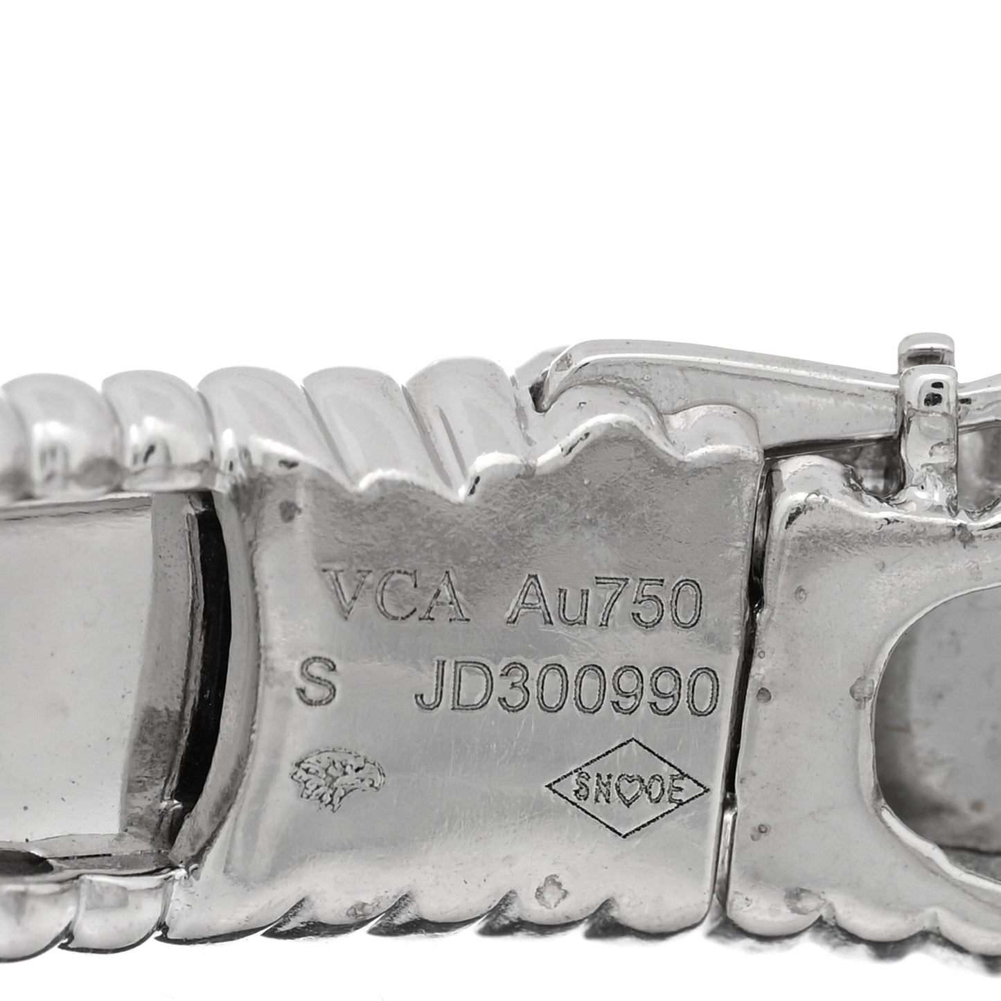This is an authentic VAN CLEEF & ARPELS 18K White Gold Perlee Signature Bangle Bracelet S. The bracelet is crafted of 18 karat white gold and features a hinged band engraved with the Van Cleef & Arpels logo in elegant script.Follow this item for alerts. Van Cleef & Arpels is a registered trademark of Van Cleef & Arpels. FASHIONPHILE is not affiliated with Van Cleef & Arpels.