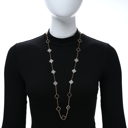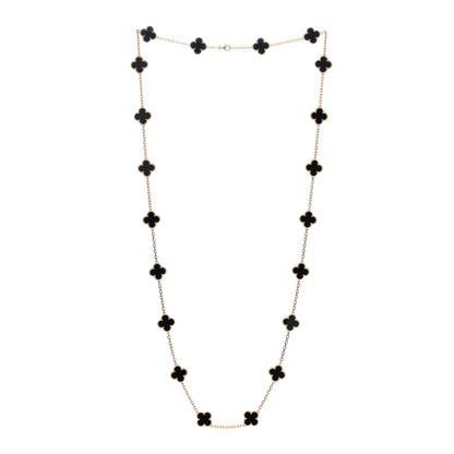 18K Yellow Gold Black Onyx 20 Motifs Vintage Alhambra Necklace