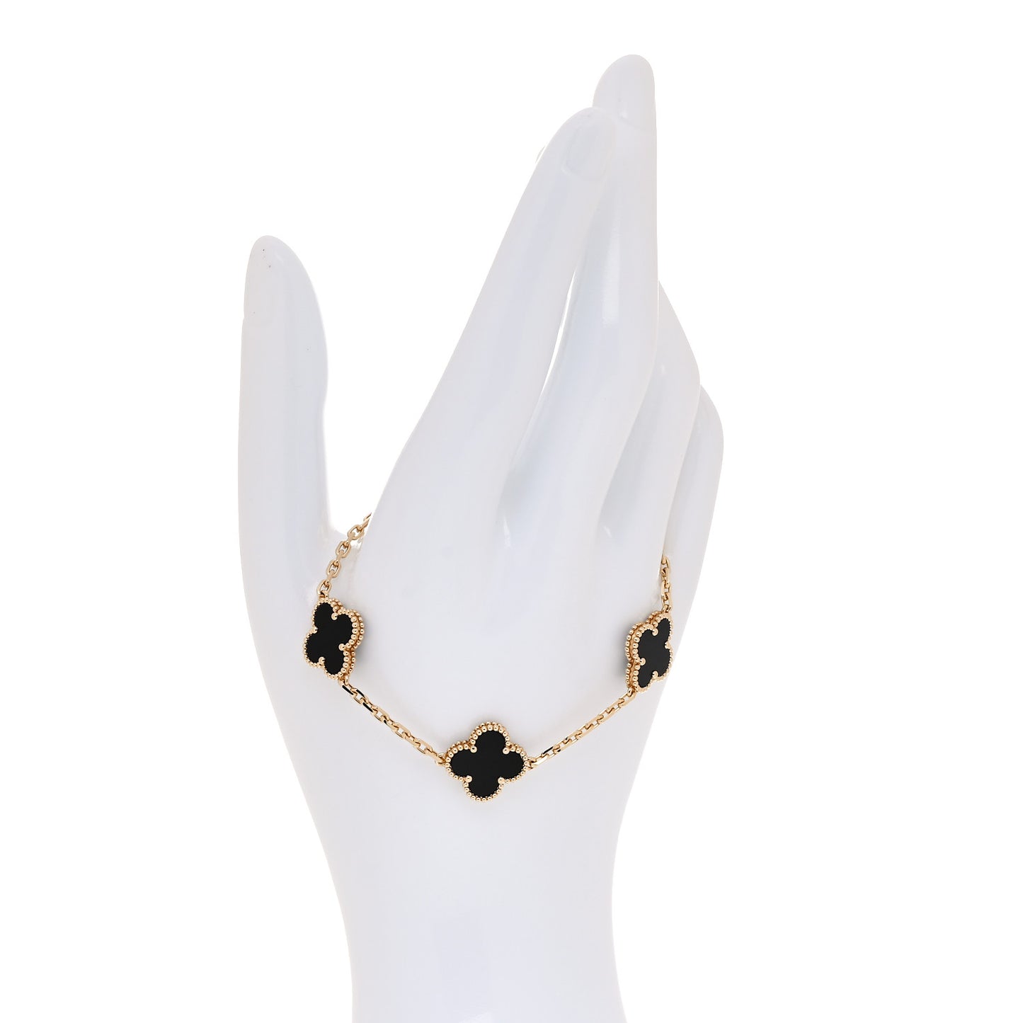 18K Yellow Gold Black Onyx 5 Motifs Vintage Alhambra Bracelet