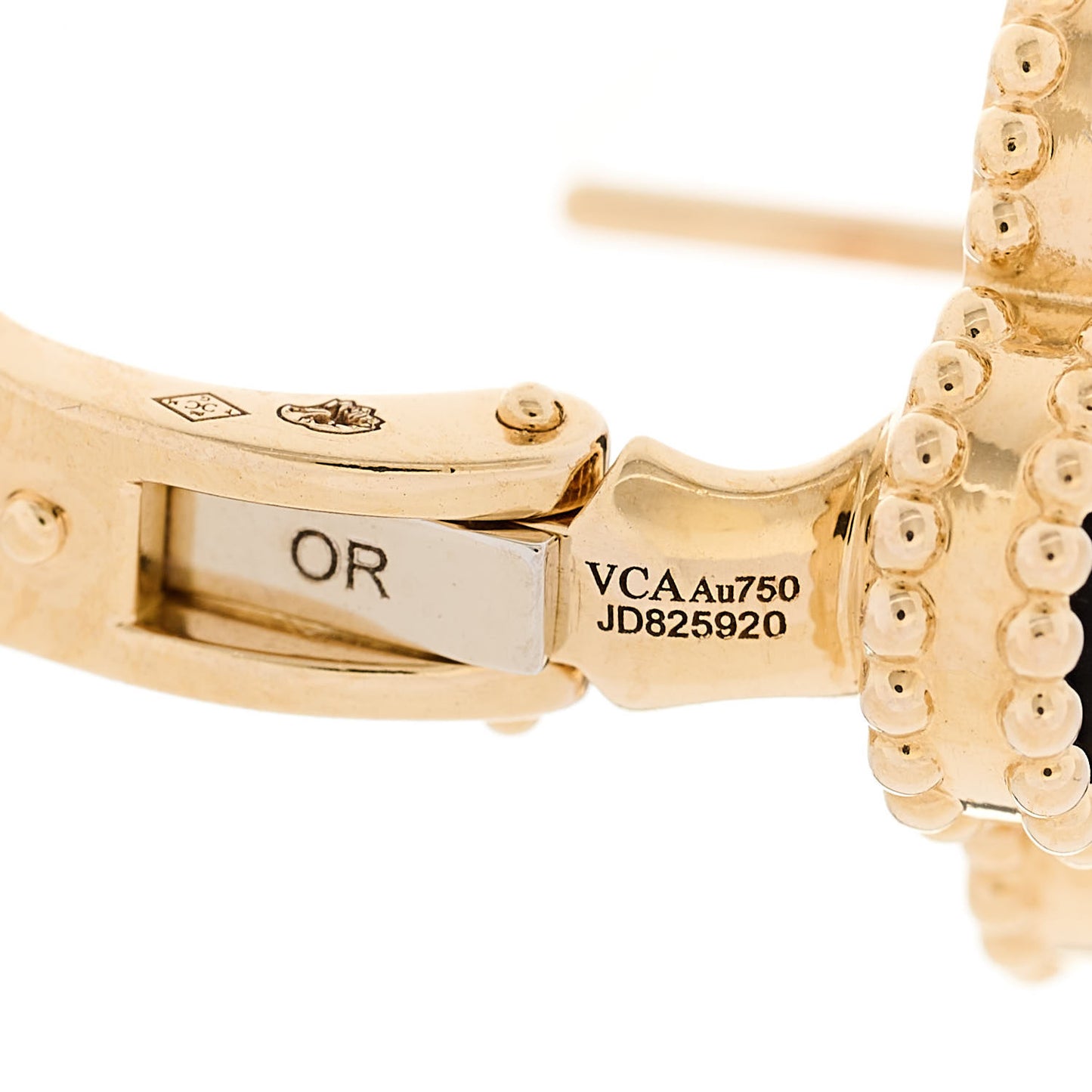 This is an authentic pair of VAN CLEEF & ARPELS 18K Yellow Gold Black Onyx Vintage Alhambra Earrings. The earrings are crafted of 18 karat yellow gold and feature clover motifs set with black onyx.Follow this item for alerts. Van Cleef & Arpels is a registered trademark of Van Cleef & Arpels. FASHIONPHILE is not affiliated with Van Cleef & Arpels.