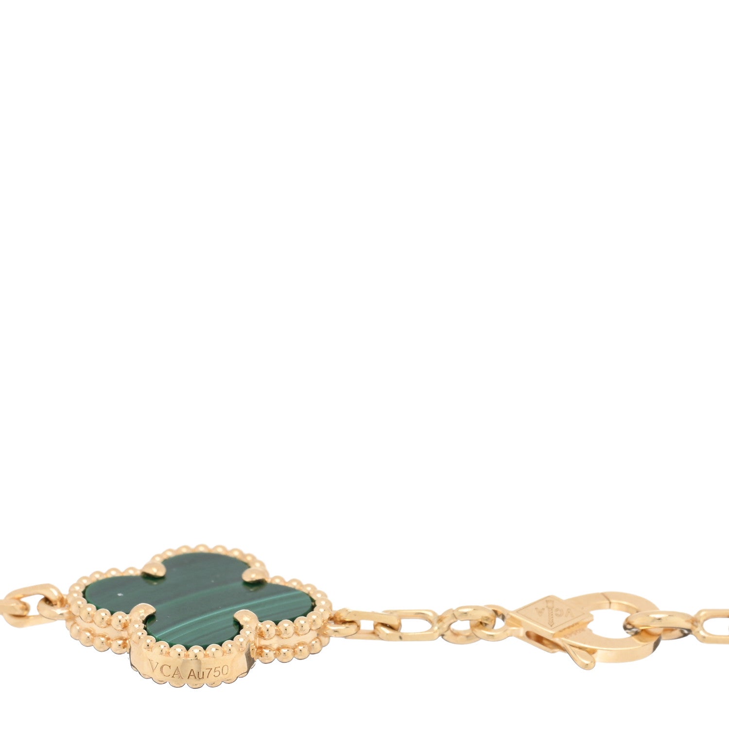 18K Yellow Gold Malachite 5 Motifs Vintage Alhambra Bracelet