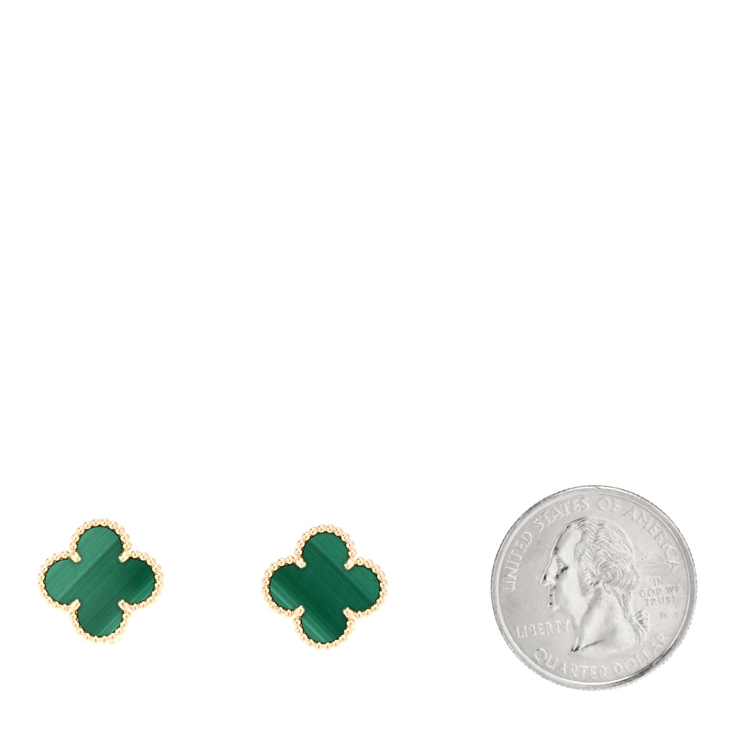 This is an authentic pair of VAN CLEEF & ARPELS 18K Yellow Gold Malachite Vintage Alhambra Earrings. The earrings are crafted of 18 karat yellow gold and feature malachite clover motifs framed by beaded detail.Follow this item for alerts. Van Cleef & Arpels is a registered trademark of Van Cleef & Arpels. FASHIONPHILE is not affiliated with Van Cleef & Arpels.