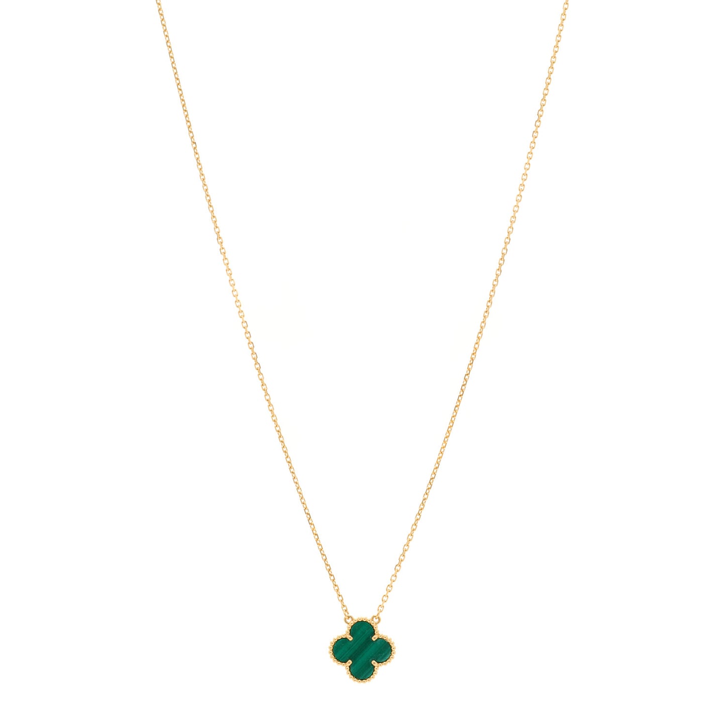 18K Yellow Gold Malachite Vintage Alhambra Pendant Necklace