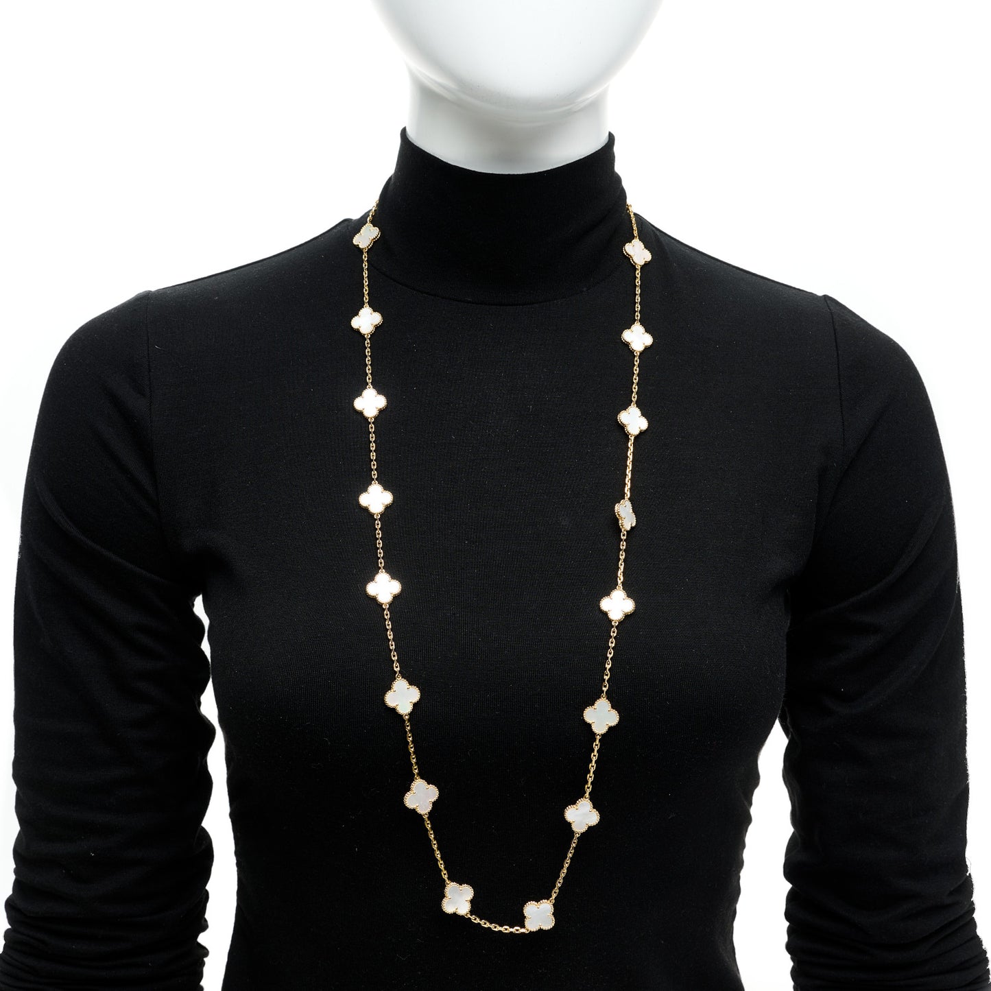 18K Yellow Gold Mother of Pearl 20 Motifs Vintage Alhambra Necklace