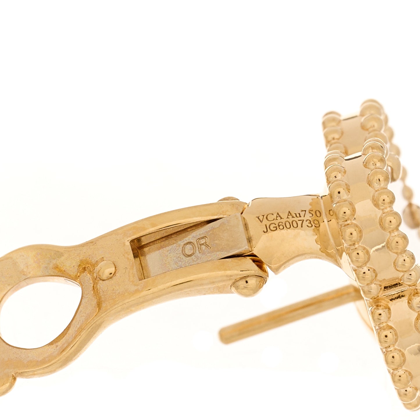 This is an authentic pair of VAN CLEEF & ARPELS 18K Yellow Gold Mother of Pearl Vintage Alhambra Earrings. The earrings are crafted of 18 karat yellow gold and feature an Alhambra clover motif set with mother of pearl framed by beaded detail.Follow this item for alerts. Van Cleef & Arpels is a registered trademark of Van Cleef & Arpels. FASHIONPHILE is not affiliated with Van Cleef & Arpels.