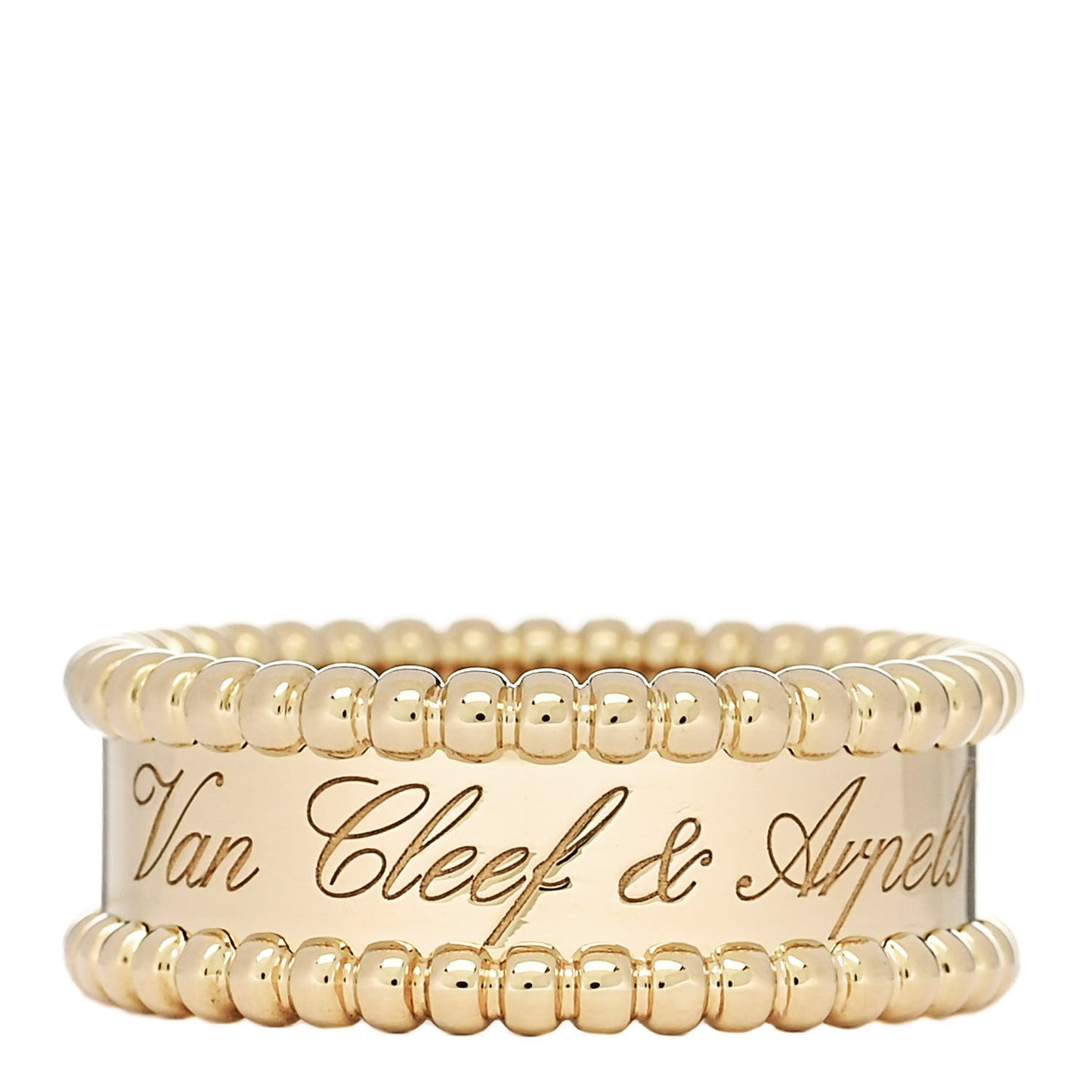 This is an authentic VAN CLEEF & ARPELS 18K Yellow Gold Perlee Signature Ring 54 7. The ring is crafted of 18 karat yellow gold and features a polished band engraved with the Van Cleef & Arpels logo framed on either side with pearl-like beads.Follow this item for alerts. Van Cleef & Arpels is a registered trademark of Van Cleef & Arpels. FASHIONPHILE is not affiliated with Van Cleef & Arpels.