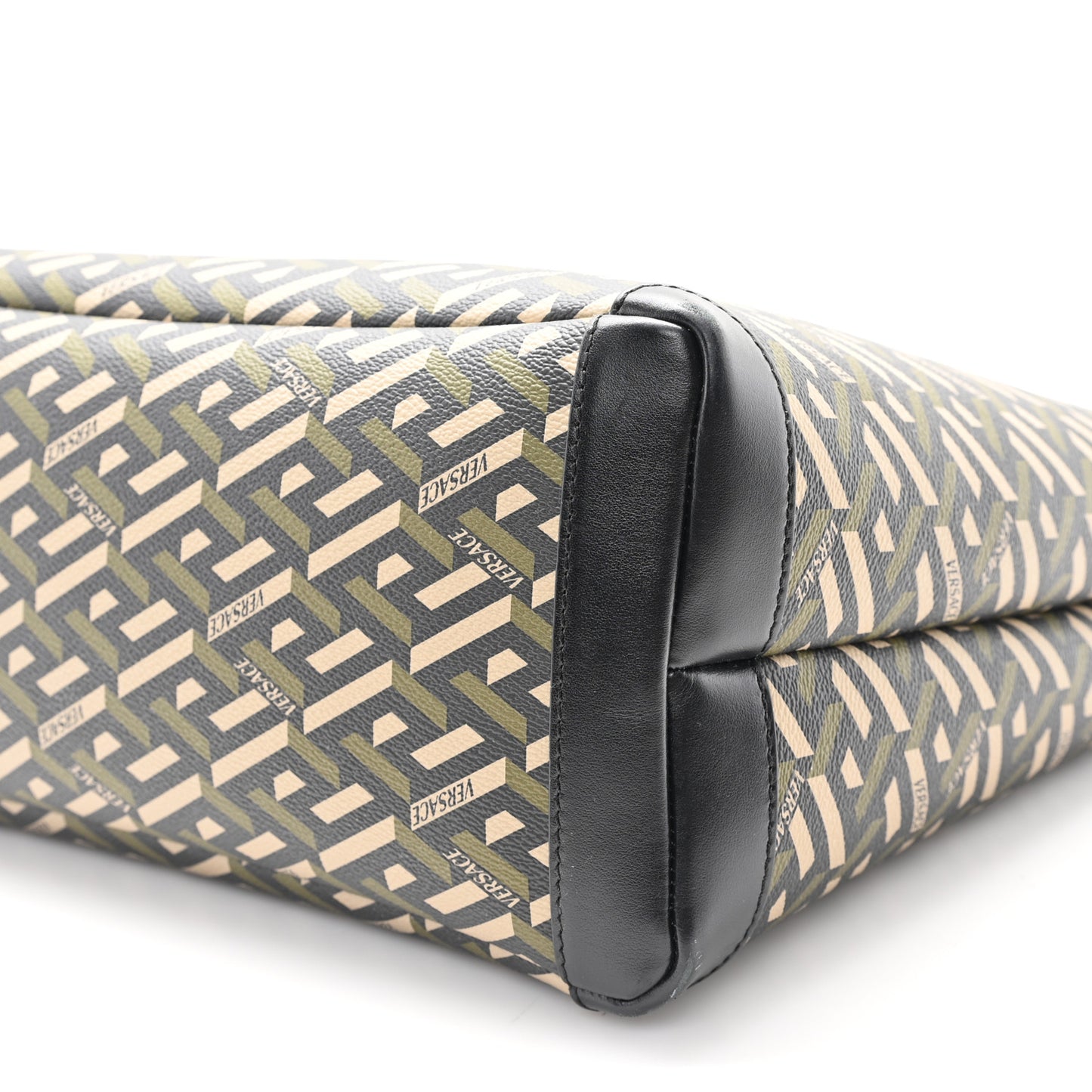 Canvas Calfskin Monogram La Greca Medusa Tote Black Khaki