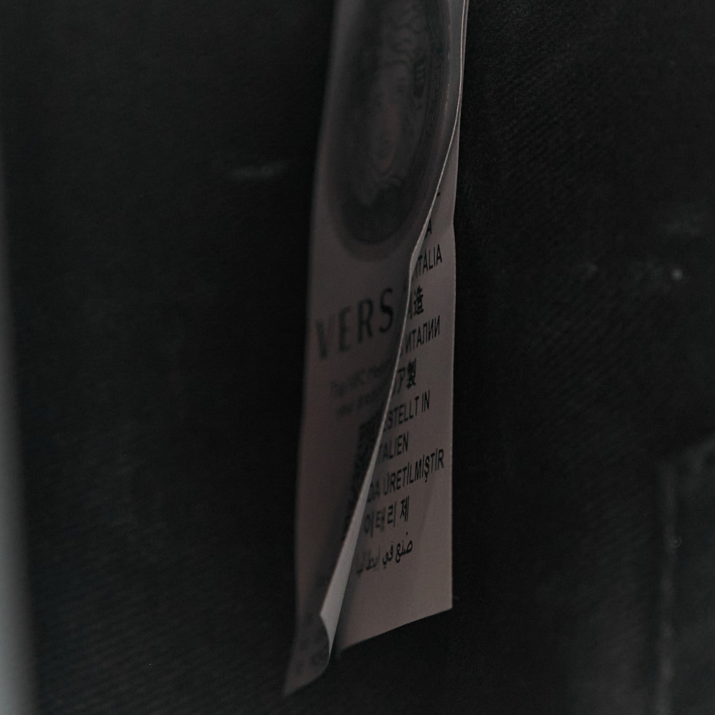 Versace/ Bags/ Shoulder Bags /Versace Grained Calfskin Large Virtus Top Handle Shoulder Bag Black