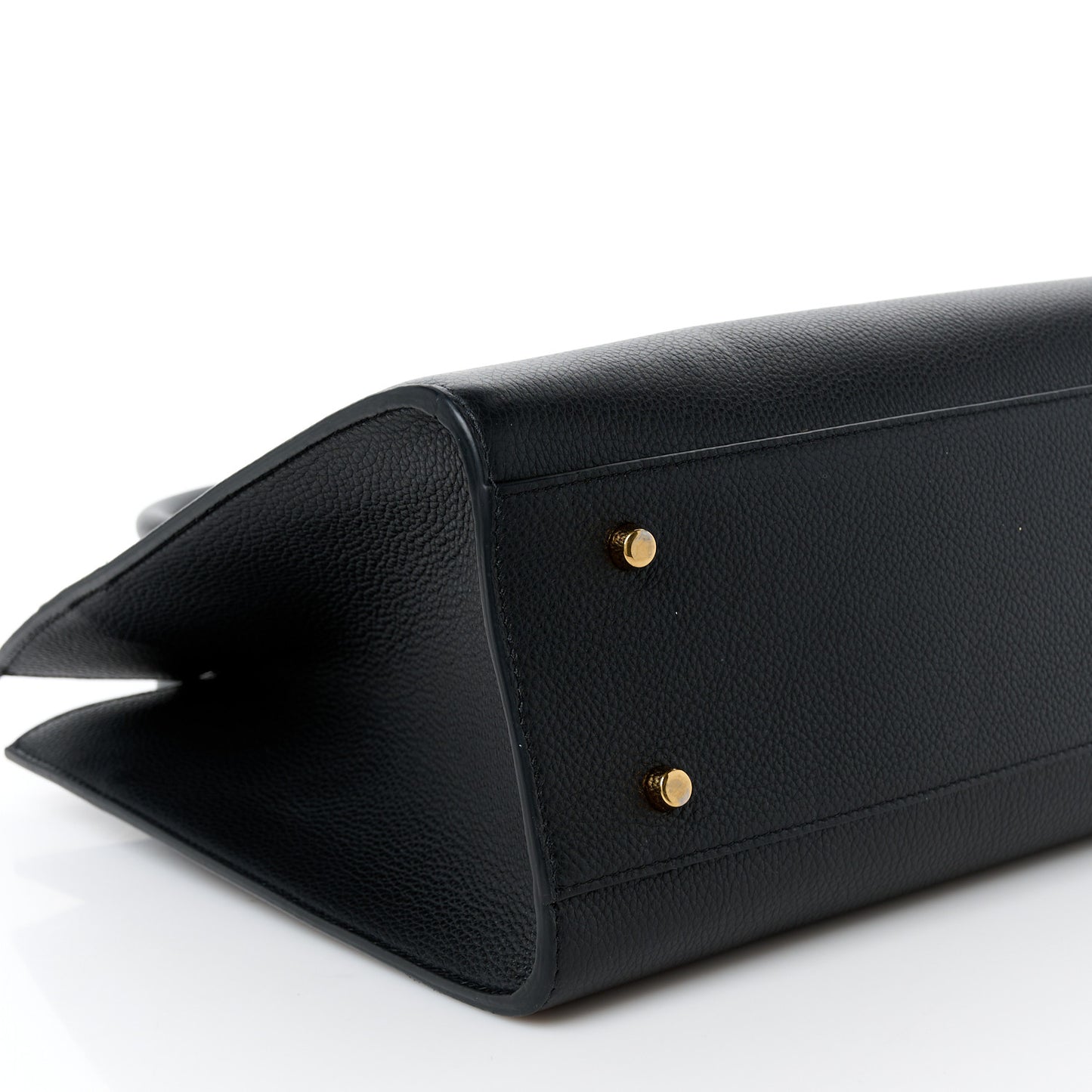 Grained Calfskin Large Virtus Top Handle Shoulder Bag Black